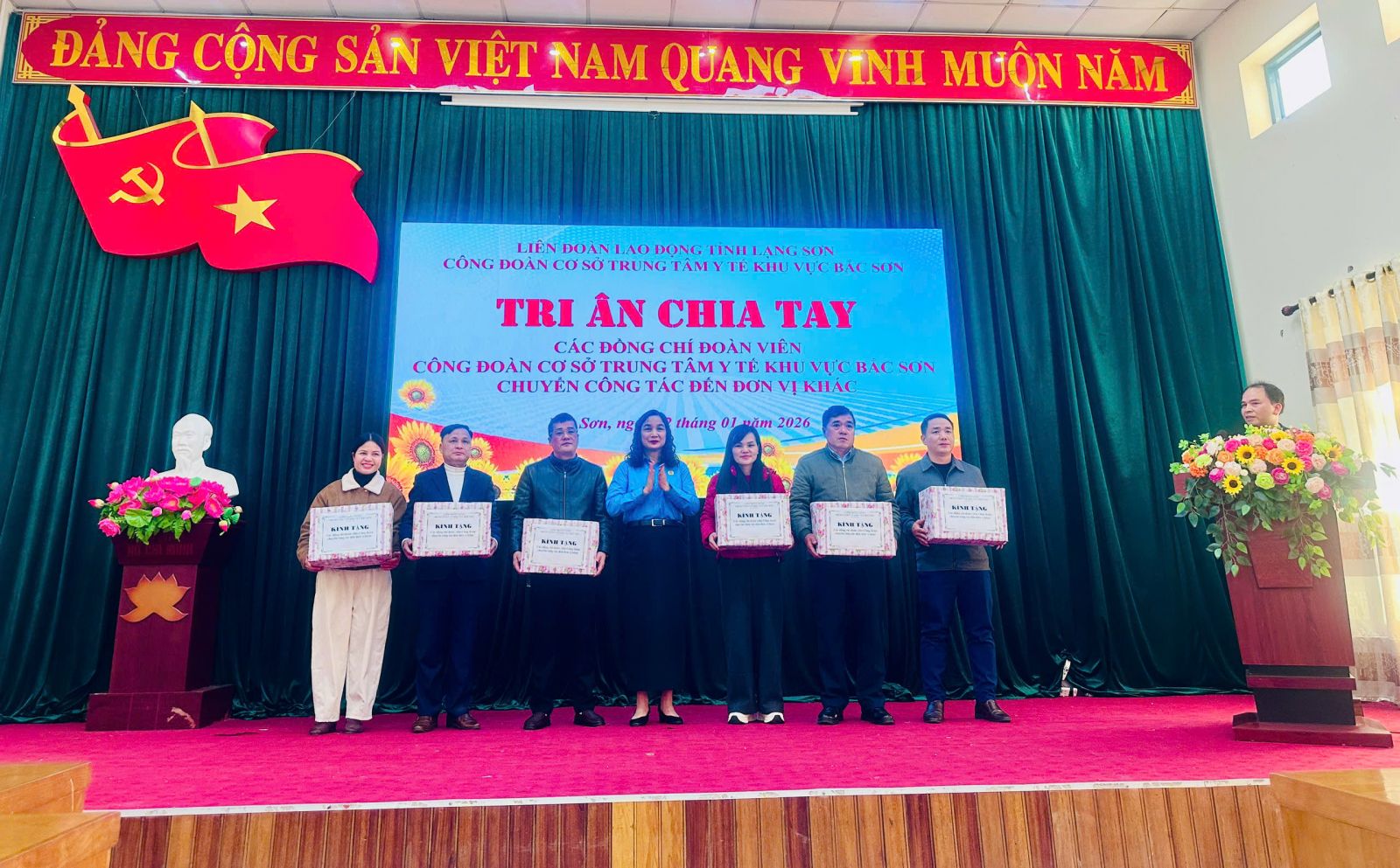 Chiều ngày 12/01/2026, Công đoàn cơ sở Trung tâm Y tế khu vực Bắc Sơn tổ chức buổi tri ân chia tay đối với 80 đoàn viên công đoàn chuyển công tác đến đơn vị mới. Tham dự buổi tri ân có đại diện Lãnh đạo Đảng ủy, Trung tâm Y tế, Ban Chấp hành Công đoàn cơ sở Trung tâm Y tế khu vực Bắc Sơn; lãnh đạo các khoa, phòng thuộc Trung tâm Y tế và đại diện 80 đoàn viên công đoàn chuyển công tác lần này.