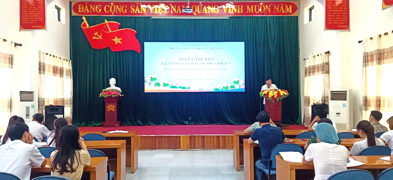 TRUNG TÂM Y TẾ KHU VỰC BẮC SƠN TUYÊN TRUYỀN KỶ NIỆM NGÀY DÂN SỐ THẾ GIỚI 11/7/2025Chiều ngày 11/7/2025, Trung tâm Y tế khu vực Bắc Sơn tổ chức buổi tuyên truyền kỷ niệm Ngày Dân số Thế giới. Dự buổi tuyên truyền có các đồng Lãnh đạo và 60 cán bộ, viên chức đang công tác tại đơn vị.